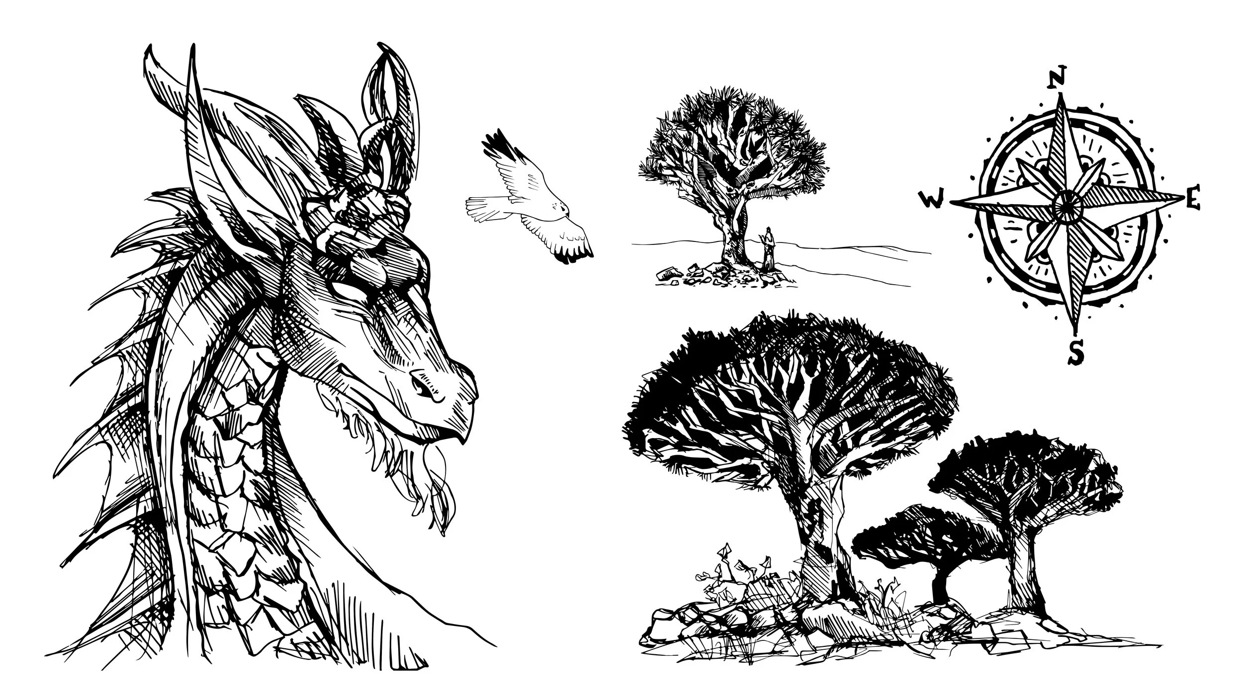 The goal of the illustrations was to create 'sketchy'-looking images that were highly detailed yet colorless, allowing them to become focal points in certain spreads. I wanted the sharpness of the line work to complement the bold display typeface.